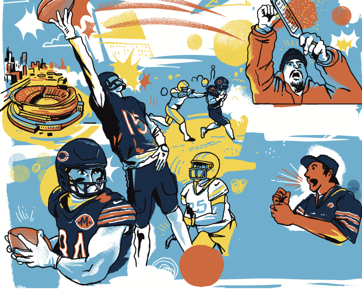 Such mania wasn’t limited to Soldier Field. Despite hailing from the Bay Area, where the 49ers and Raiders reign supreme, twenty-three-year-old graduate student Raunak packed into Jimmy’s Woodlawn Tap in Hyde Park alongside dozens of buzzing Bears fans for the game against the Rams. “The entire bar was more packed than I’ve ever seen,” they told the Weekly. “There was a collective energy in the room animating [fans’] desire to win. You could tell that everyone, regardless of whether they knew each other, where they’re from, or how they’re related to each other, all wanted to see the Bears win.”