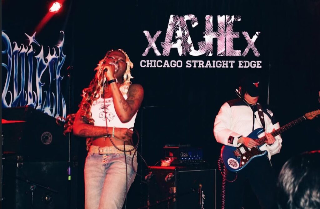 Chicago straight edge band ACHE performs a high-energy set, further cementing their place in the city’s DIY music scene. Credit: Kaelah Serrano | @stargvzingg