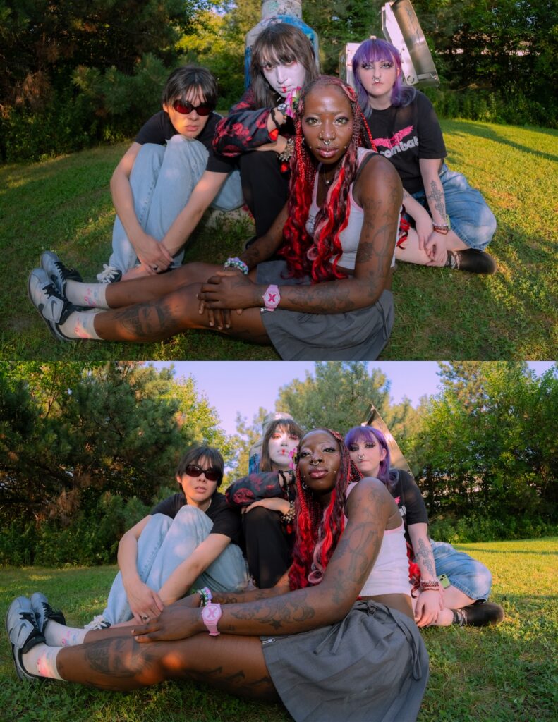 Members of the Chicago-based straight edge band ACHE pause for a group portrait. The local hardcore act, a frequent presence at community hubs like Casa Cafe, includes (L-R): Diego Ayala, Keni Adekuie, Yemiko Watanabe, and Noreen Buscher. Credit: Bryanna B. | @yeahicouldbedown