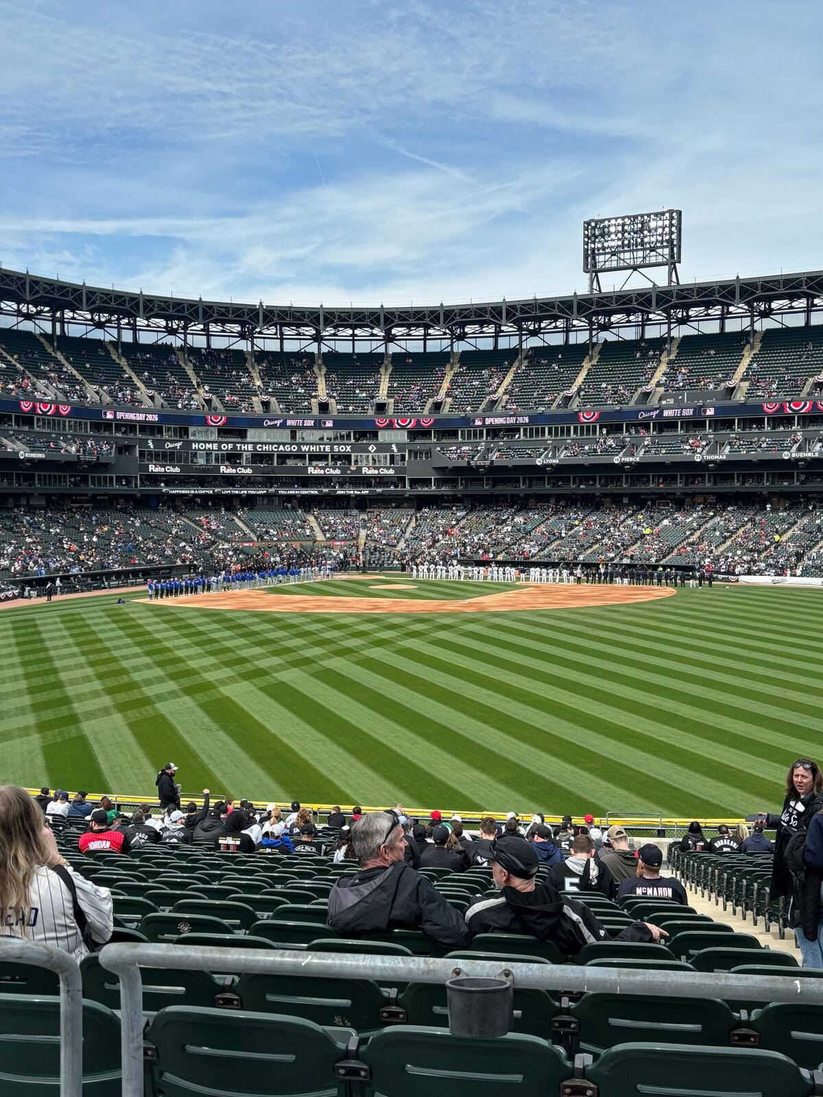 Later in the day, I asked Leo the vendor what stood out about Rate Field’s atmosphere, given his experience selling beer at nearly every venue in Chicago, Wrigley Field included. He had positive things to say about Sox’ fans “energy and demeanor,” especially on well-attended days like the opener. “It is such a community vibe over there,” he said. “You have more than half the stadium hanging outside the park for hours in the parking lot cooking hot dogs… there is a sense of community [that] does feel different from other stadiums.”